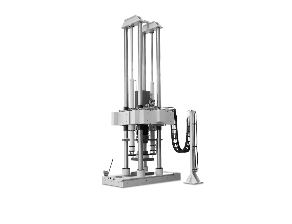 Kifejezetten nagyméretű mintákhoz tervezve, mivel a hidraulikusan állítható felső keresztfejjel a magasság könnyen beállítható. Építőanyagok próbatestjeinek nyomóvizsgálatához: