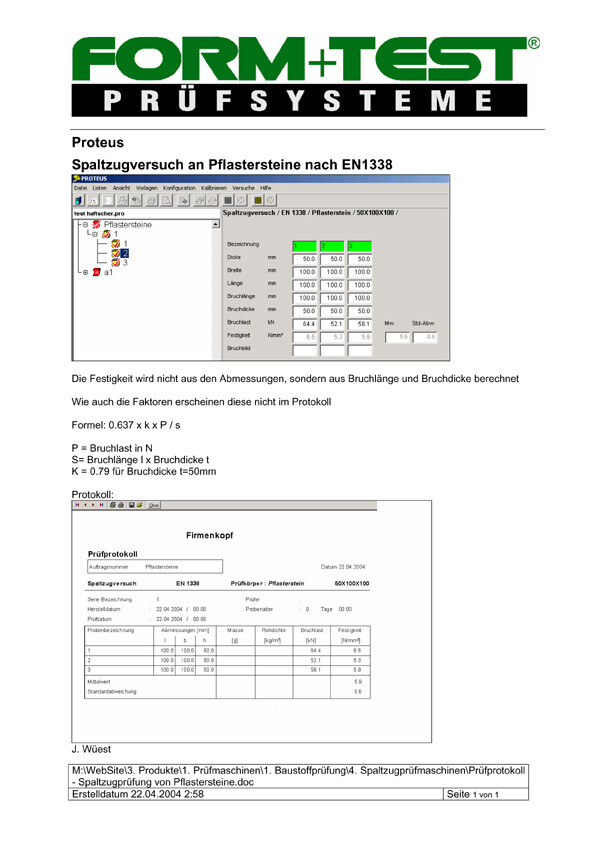 Kifejezetten az EN 1338 szabvány szerinti járdakövek szakítószilárdságának meghatározására